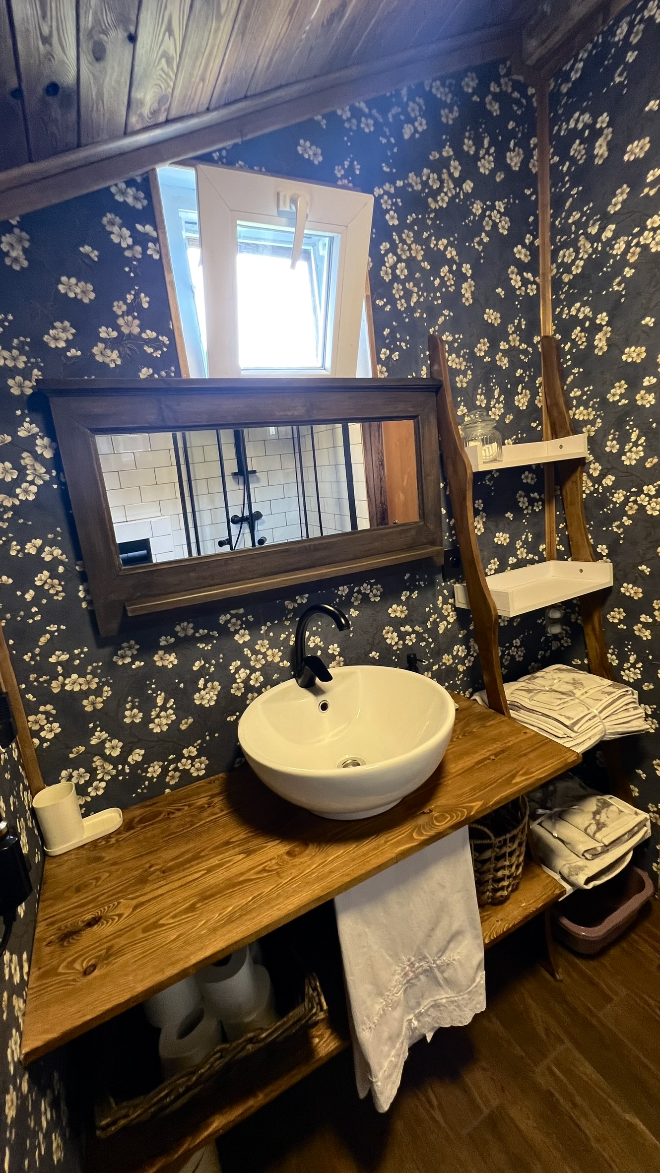 W łazience mieści się kabina prysznicowa, umywalka i WC. Przygotujemy dla Was ręczniki i pościele.